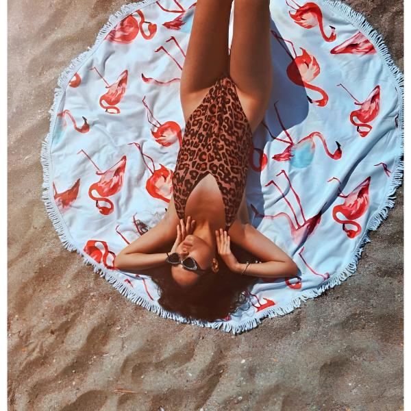 Η κυκλική πετσέτα προορίζεται για χαλάρωση στην παραλία ή στην πισίνα, ωστόσο μπορεί επίσης να φορεθεί δεμένη γύρω από το σώμα ως ρούχο.