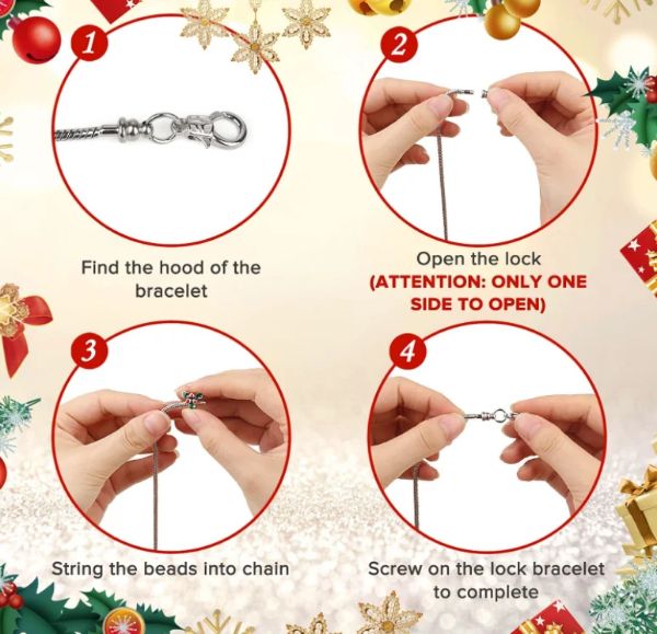 - Ένα χριστουγεννιάτικο ημερολόγιο με 22 γούρια και 2 βραχιόλια για να δημιουργήσετε δύο γοητευτικά βραχιόλια.