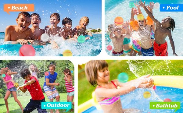 Ανεξάρτητα από την ηλικία, τα επαναχρησιμοποιούμενα μπαλονάκια νερού μας παρουσιάζουν μια συναρπαστική και ευχάριστη μέθοδο για να νικήσετε τη ζέστη, κατά τη διάρκεια των καυτών καλοκαιρινών ημερών. Προσφέρουν ατελείωτες δυνατότητες για συμμετοχή σε ένα ευρύ φάσμα παιχνιδιών και δραστηριοτήτων, όπως ρίψεις νεροβομβών, αγώνες σκυταλοδρομίας και αγώνες νερού στην πισίνα.