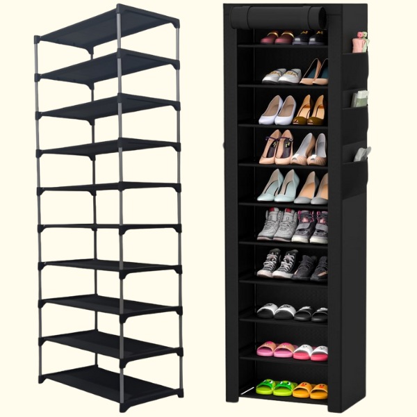 Η OMARA φορητή και πτυσσόμενη παπουτσοθήκη διαθέτει 10 ρυθμιζόμενα ράφια. Σας επιτρέπει να αποθηκεύσετε έως και 20 ζευγάρια παπούτσια, διατηρώντας τη συλλογή σας τακτοποιημένη και εύκολα προσβάσιμη.