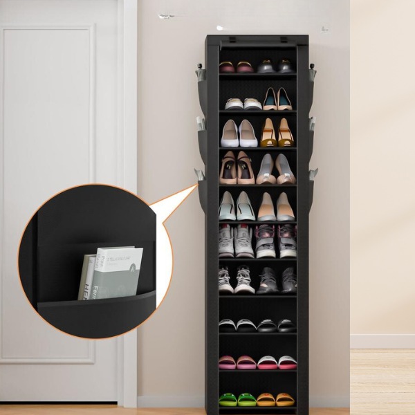 Για επιπλέον αποθήκευση, η παπουτσοθήκη περιλαμβάνει πλαϊνές τσέπες. Ιδανικές για να διατηρείτε μικρότερα αντικείμενα όπως κλειδιά, αξεσουάρ ή καθαριστικά οργανωμένα.
