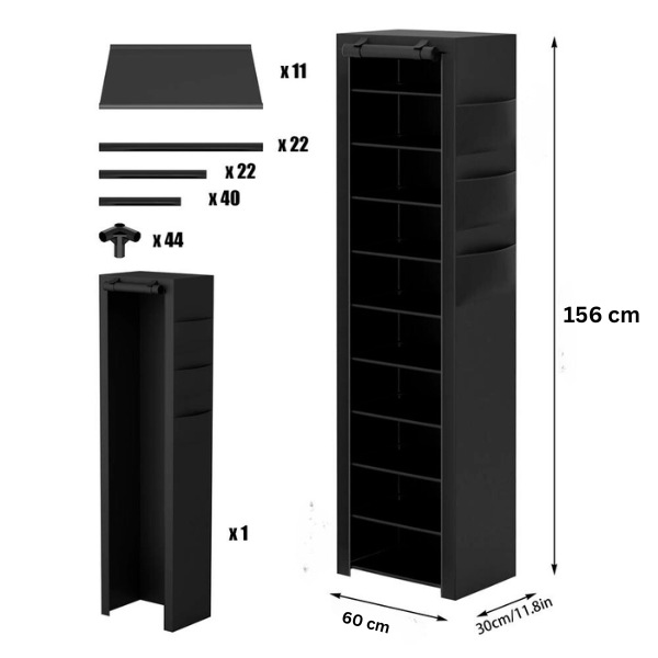 Εξοπλισμένη με ύφασμα ανθεκτικό στη σκόνη και κλείσιμο με φερμουάρ. Αυτή η παπουτσοθήκη διασφαλίζει ότι τα παπούτσια σας παραμένουν καθαρά, προστατεύοντάς τα από σκόνη και βρωμιά.