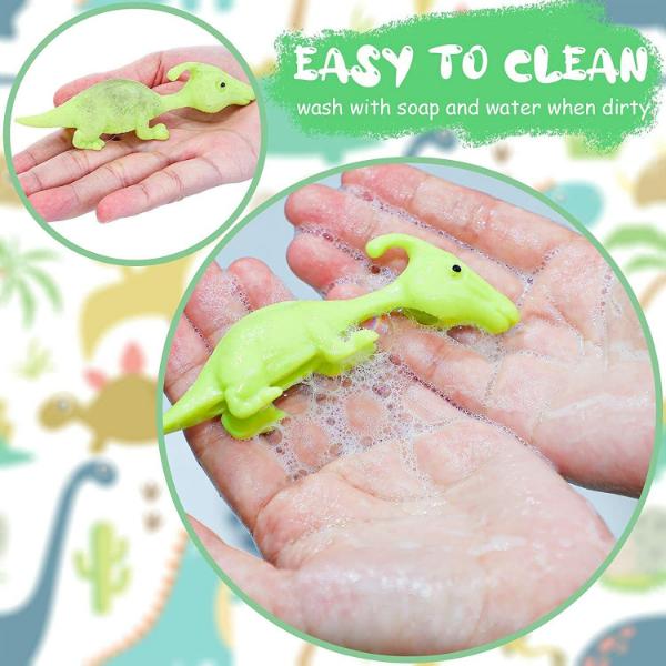Ένα διασκεδαστικό σετ με 5 δεινοσαύρους διαφορετικών σχημάτων και φωτεινών χρωμάτων, κάθε μαλακός δεινόσαυρος από καουτσούκ είναι εξαιρετικά ελαστικός και κολλώδης! Απασχολήστε το παιδί σας με αμέτρητες ώρες παιχνιδιού.