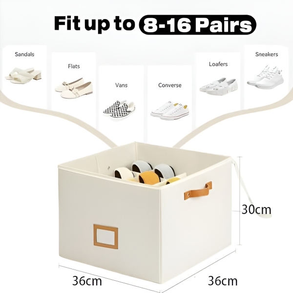 Ο οργανωτής παπουτσιών SHOVERA έχει σχεδιαστεί για να χωράει 8-16 ζευγάρια παπουτσιών, όπως σανδάλια, παντόφλες και αθλητικά, σε συμπαγές μέγεθος 36x36x30 εκ. Ο πτυσσόμενος σχεδιασμός του εξασφαλίζει εύκολη αποθήκευση όταν δεν χρησιμοποιείται, καθιστώντας τον ιδανικό για σπίτια, φοιτητικές εστίες και εποχιακά υποδήματα.